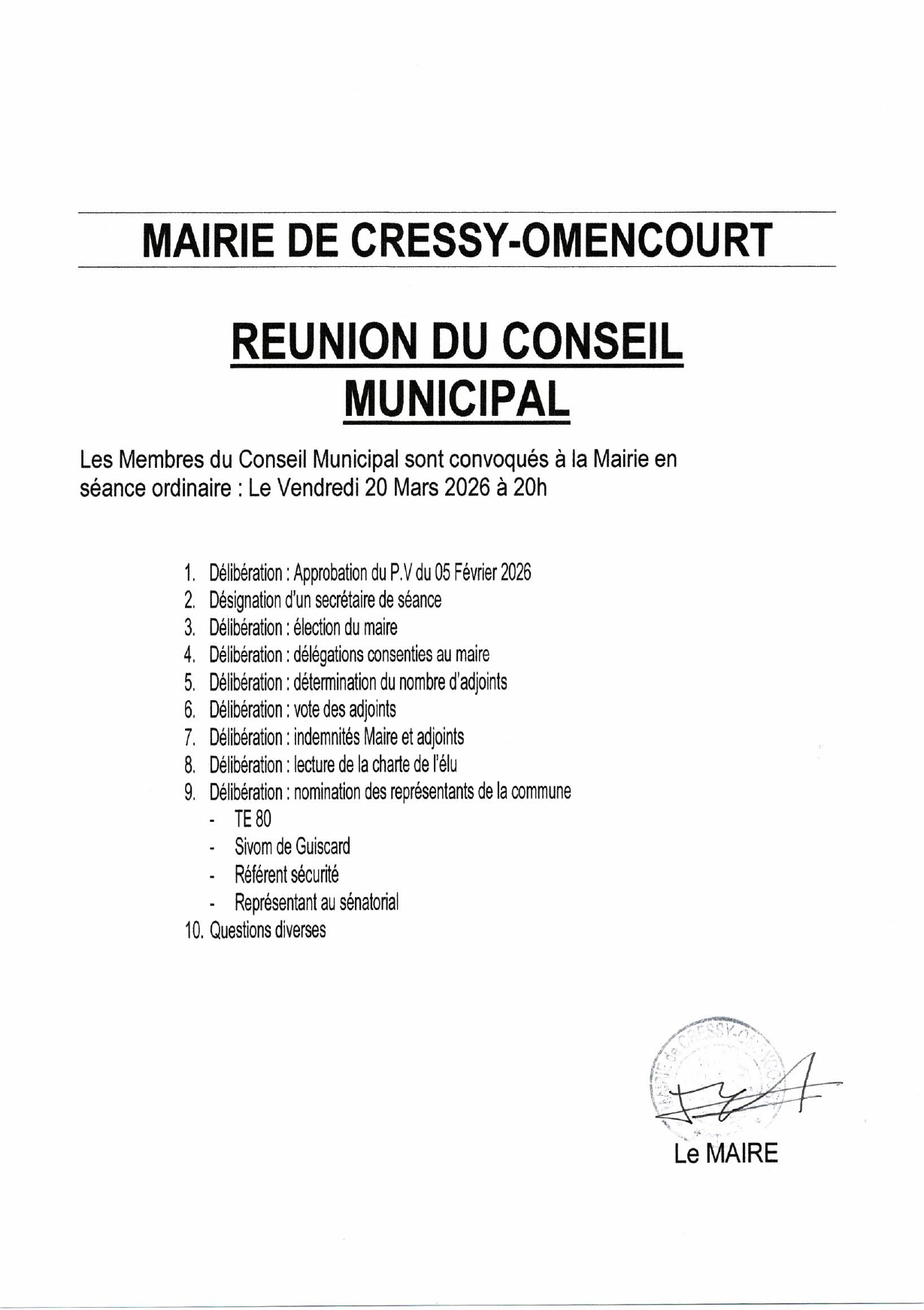 - Mercredi 17 Décembre 2025 :REUNION DE CONSEIL MUNICIPAL